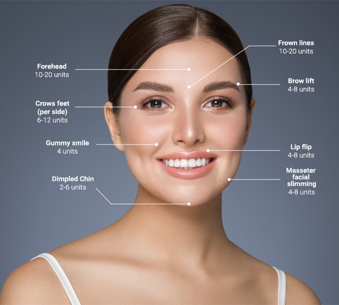 Smooth away fine lines and wrinkles with our minimally invasive treatment options: Botox®, Xeomin®, and Dysport®. Each offers similar results, helping you achieve a refreshed, more youthful appearance.